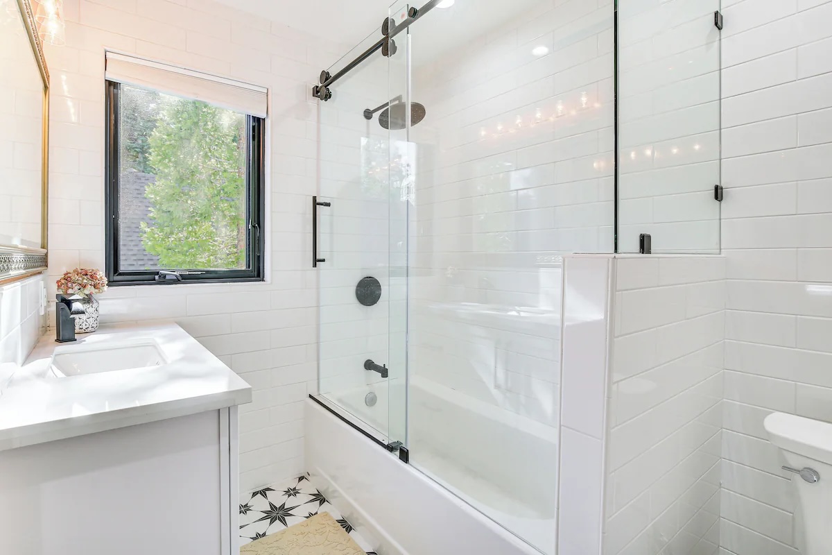 Altitude Haus Bedroom 1 is a beautiful and spacious private bedroom, sleeping up to 2x athletes in 1x King bed with a private en-suite bathroom featuring his-and-hers sinks, a bathtub and a separate shower. The bedroom also features multiple windows with scenic views.