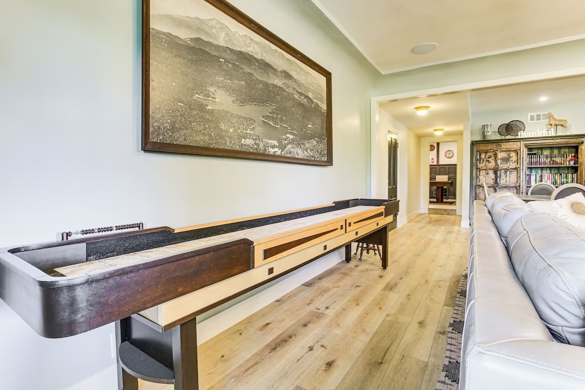 Our luxurious lake house features plenty of space for all athletes and guests and assures a beautiful, relaxing and fun experience when not swimming, biking, running, hiking or SUP’ing. From the outside deck with views and BBQ grill to the piano, pool table, shuffleboard, arcade or hot tub – this property features everything you would expect from a high-end lake house for your own family vacation at a fraction of the cost than renting comparable private accommodations in the area.